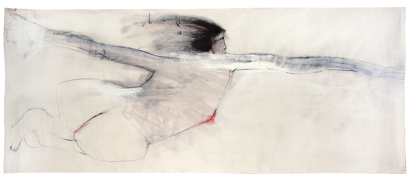 “Nudo in volo” 168×70 cm. Acrilico e carboncino su carta.